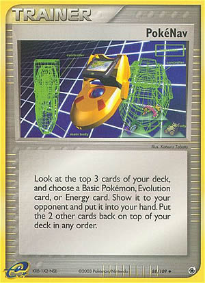 Beschreibung: Look at the top 3 cards of your deck, and choose a basic Pokemon, Evolution card, or Energy card. Show it to your opponent and put it into your hand. Put the 2 other cards back on top of your deck in any other.