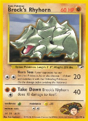 Kosten: Brock´s Rhyhorn does 10 damage to itself.  Schaden: