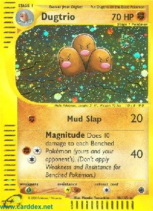 Kosten: Does 10 damage to each Benched Pokémon (yours and your opponent's). (Don't apply Weakness and Resistance for Benched Pokémon.)  Schaden: