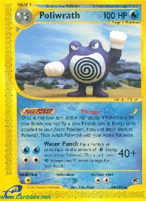Once during your turn (before your attack), if Poliwrath is on your Bench, you may flip a coin. If heads, take all Energy cards attached to your Active Pokémon, if any, and attach them to Poliwrath. Then switch Poliwrath with your Active Pokémon.