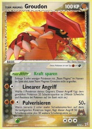 As long as the number of Pokemon in play (both yours and your opponent's) that Team Magma in its name is 3 or less, Team Magma's Groudon can't attack.