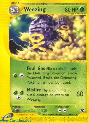 Kosten: Flip a coin. If tails, put 6 damage counters on Weezing.  Schaden: