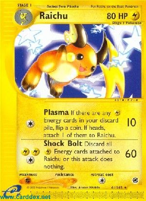 Kosten: Lege alle an Raichu angelegten -Energiekarten auf deinen Ablagestapel, oder dieser Angriff hat keine Auswirkung.  Schaden: