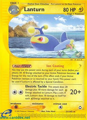 You may use this power once during each of your turns (before your attack). All Energy attached to your Active Pokémon becomes Energy for the rest of the turn. (This effect ends of your Active Pokémon retreats or is returned to your hand.) This power can't be used if Lanturn is affected by a Special Condition.