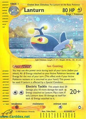 You may use this power once during each of your turns (before your attack). All Energy attached to your Active Pokémon becomes Energy for the rest of the turn. (This effect ends of your Active Pokémon retreats or is returned to your hand.) This power can't be used if Lanturn is affected by a Special Condition.
