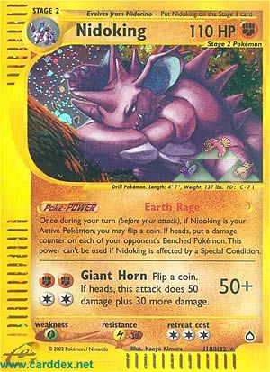 Once during your turn (before your attack), if Nidoking is your Active Pokémon, you may flip a coin. If heads, put a damage counter on each of your opponent's Benched Pokémon. This power can't be used if Nidoking is affected by a Special Condition.
