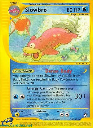 Any damage done to Slowbro by attacks from Basic Pokémon (excluding Baby Pokémon) is reduced by 20.