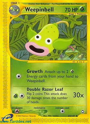 Kosten: Attach up to 2 Energy cards from your hand to Weepinbell.  Schaden: