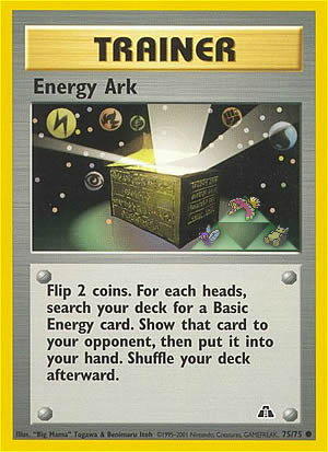 Flip 2 coins. For each heads, search your deck for a Basic Energy card. Show that card to your opponent, then put it into your hand. Shuffle your deck afterward.