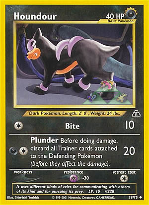 Lege alle Trainerkarten, die an das verteidigende Pokemon angelegt sind, auf den Ablagestapel deines gegners, bevor der Schaden zugefügt wird (bevor sie den Schaden beeinflussen können).