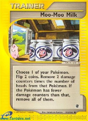Beschreibung: Wähle eines deiner Pokemon. Wirf 2 Münzen. Entferne zwei Schadensmarken mal der Anzahl "Kopf" von diesem Pokemon. Falls das Pokemon weniger Schadensmarken hat, entferne alle.