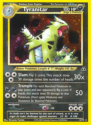 Kosten: Flip 2 coins. This attack does 30 damage times the number of heads.  Schaden: