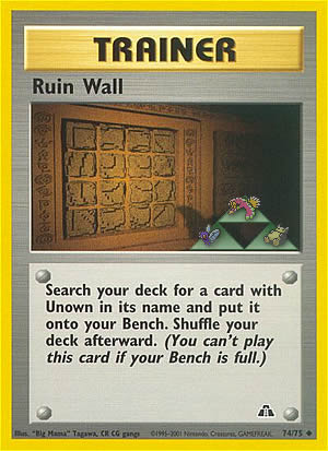Search your deck for a card with Unown in its name and put it onto your Bench. Shuffle your deck afterward. (You can't play this card if your Bench is full.)