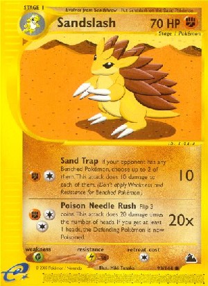 Wirf 3 Münzen. Dieser Angriff fügt 20 Schadenspunkte mal der Anzahl "Kopf" zu. Wenn du dabei mindestens 1 "Kopf" erzielst, ist das verteidigende Pokémon jetzt vergiftet.