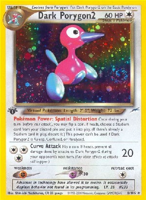 Once during your turn (before your attack), you may flip a coin. If heads, choose a Stadium card from your discard pile and put it into play. (If there's already a Stadium card in play, discard it.) This power can't be used if Dark Porygon2 is Asleep, Confused, or Paralyzed.