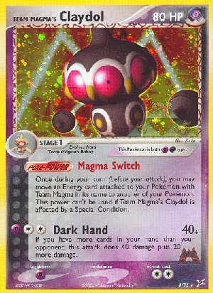 Once during your turn (before your attack), you may move an Energy card attached to your Pokémon with Team Magma in its name to another of your Pokémon. This power can't be used if Team Magma's Claydol is affected by a Special Condition.