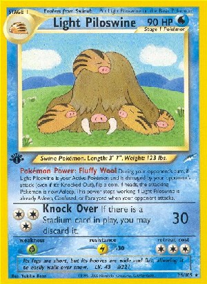 During your opponent's turn, if Light Piloswine is your Active Pokémon and is damaged by your oppnent's attack (even if it's Knocked Out), flip a coin. If heads, the attacking Pokémon is now Asleep. This power stops working if Light Piloswine is already Asleep, Confused, or Paralyzed when your opponent attacks.