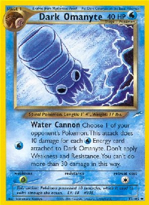Kosten: Choose 1 of your opponent's Pokémon. This attack does 10 damage for each Energy card attached to Dark Omanyte. Don't apply Weakness and Resistance. You can't do more than 30 damage in this way.  Schaden:
