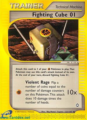Lege diese Karte an 1 deiner -Pokémon im Spiel an. Dieses Pokémon kann den Angriff dieser Karte anstatt seiner eigenen verwenden. Lege am Ende deines Zuges Kampf-Würfel 01 auf deinen Ablagestapel.