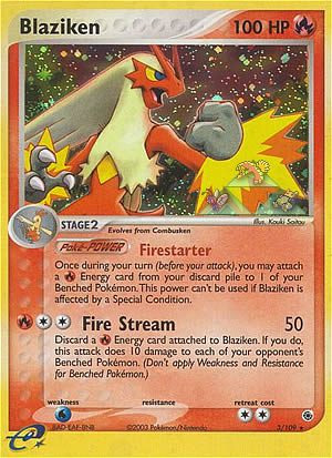 Once during your turn (before your attack), you may attach a Energy card from your discard pile to 1 of your Benched Pokemon. This power can't be usede if Blaziken is affected by a Spezial Condition.