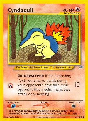 Kosten: If the Defending Pokémon tries to attack during your opponent's next turn, your opponent flips a coin. If tails, that attack does nothing.  Schaden:
