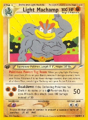 When you play Light Machamp from your hand, if is on your Bench, remove 3 damage counters than that, remove all of them. Then, switch Light Machamp with your Active Pokémon.