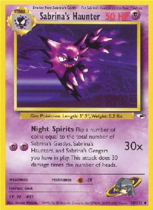 Flip a number of coins equal to the total number of Sabrina's Gastlys, Sabrina's Haunter, and Sabrina's Gengars you have in play. This attack does 30 damage times the number of heads.