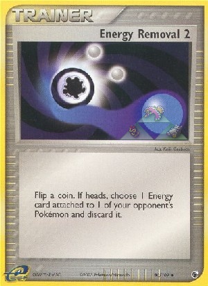 Wirf eine Münze. Wähle bei 'Kopf' 1 Energiekarte, die an ein Pokémon deines Gegners angelegt ist, und lege sie auf seinen Ablagestapel.