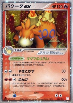 | Eingetragen von: Iruini | Pokémon-EX: Wenn Camerupt ex kampfunfähig wird, nimmt dein Gegner 2 Preise. |
