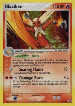 As long as Blaziken's remainingHP is 40 or less,Blaziken does 40 damage to the Defending Pokemon ( before applying Weakness and Resistance