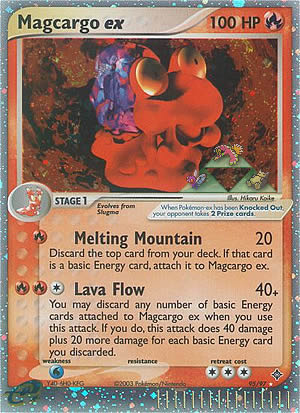 You may discard any number of basic Energy card attached to Magcargo ex when you use this attack. If you do, this attack does 40 damage plus 20 more damage for each basic Energy card you discarded.