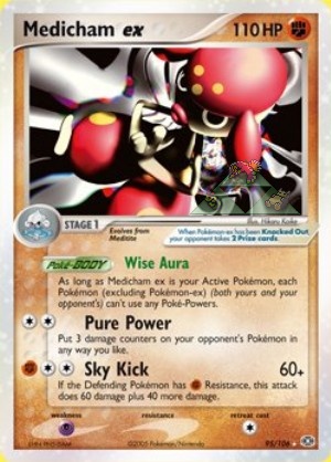 | Eingetragen von: Iruini | Pokémon-EX: Wenn Meditalis ex kampfunfähig wird, nimmt dein Gegner 2 Preise. |