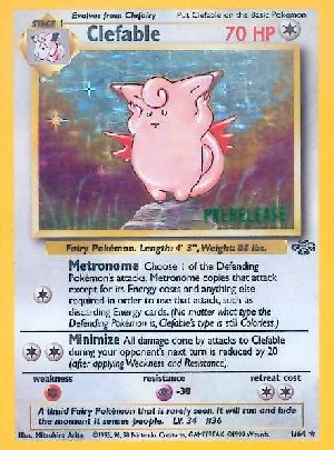 Kosten: Wähle einen der Angriffe des verteidigenden Pokémon. Metronom kopiert diesen Angriff, außer seiner Energiekosten und was sonst noch für den Einsatz dieses Angriffs erforderlich ist, wie z.B. das Entfernen von Energiekarten. (Unabhängig vom Typ des verteidigenden Pokémon bleibt Pixi immer noch ein farbloses Pokémon.)  Schaden: