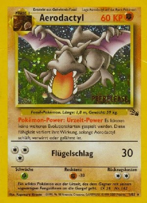 Es können keine weiteren Evolutionskarten gespielt werden. Diese Fähigkeit verliert ihre Wirkung, solange Aerodactyl schläft, verwirrt oder gelähmt ist.