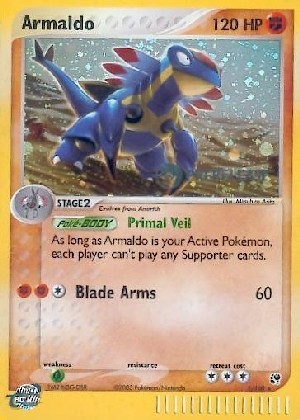 As long as Armaldo is your Active Pokémon, each player can't play any Supporter cards.