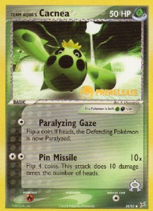 Kosten: Flip a coin. If heads, the Defending Pokemon is now Paralyzed.  Schaden: