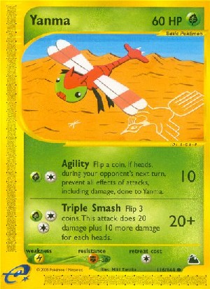 Kosten: Wird eine Münze. Bei "Kopf" verhindere während des nächsten Zuges alle Auswirkungen von Angriffen (einschließlich Schaden), die Yanma zugefügt werden.  Schaden: