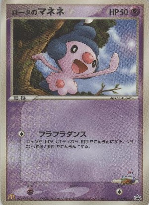 Kosten: Flip a coin. If heads, the Defending Pokémon is now Confused. If tails, both Roota's Jr. Mime and the Defending Pokémon are now Confused.  Schaden: