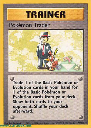 Beschreibung: Tausche eines der Basis-Pokemon oder eine der Evolutionskarten in Deiner Hand gegen eines der Basis-Pokemon oder eine Evoltionskarte aus Deinem Stapel. Zeige Deinem Gegner beide Karten. Mische danach Deinen Stapel.