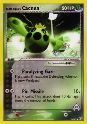 Kosten: Flip a coin. If heads, the Defending Pokemon is now Paralyzed.  Schaden: