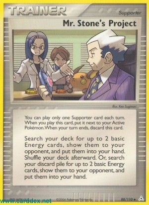 Durchsuche dein Deck nach bis zu 2 Basis-Energiekarten, zeige sie deinem Gegner und nimm sie auf die Hand. Mische dein Deck danach. Oder: Durchsuche deinen Ablagestapel nach bis zu 2 Basis-Energiekarten, zeige sie deinem Gegner und nimm sie auf die Hand.