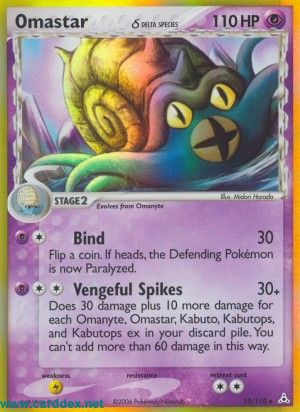Dieser Angriff fügt 30 Schadenspunkte plus 10 weitere Schadenspunkte für jedes Amonitas, Amoroso, Kabuto, Kabutops und Kabutops ex, das sich auf deinem Ablagestapel befindet. Es lassen sich so nicht mehr als 60 Schadenspunkte hinzufügen.