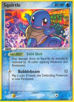 Jeder Schaden, der Schiggy durch Angriffe zugefügt wird, wird um 10 Schadenspunkte reduziert (nachdem Schwäche und Resistenz verrechnet wurden).