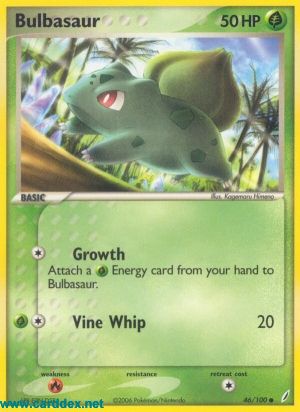 Kosten: Lege eine -Energiekarte von deiner Hand an Bisasam an.  Schaden: