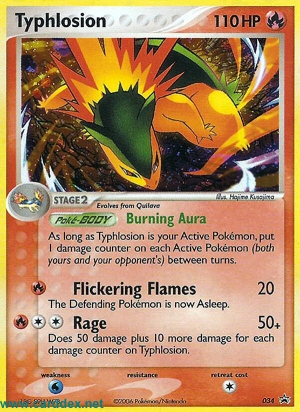 As long as Typhlosion is your Active Pokémon, put 1 damage counter on each Active Pokémon (both yours and your opponent's) between turns.
