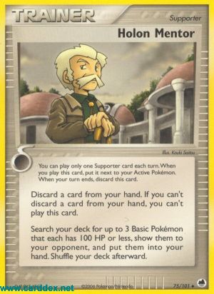 Durchsuche dein Deck nach bis zu 3 Basis-Pokémon, die jeweils 100 KP oder weniger haben, zeige sie deinem Gegner und nimm sie auf die Hand. Mische dein Deck danach.