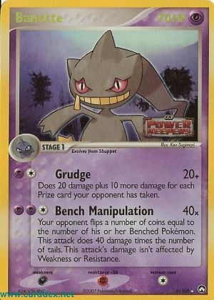 Dein Gegner wirft eine Anzahl Münzen, die der Anzahl der Pokémon auf seiner Bank entspricht. Dieser Angriff fügt 40 Schadenspunkte mal der Anzahl „Zahl“ zu. Der Schaden dieses Angriffs wird durch Schwäche und Resistenz des Verteidigenden Pokémon nicht verändert.