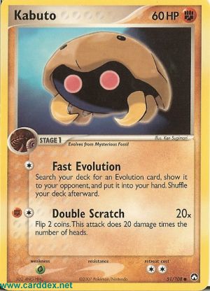 Kosten: Durchsuche dein Deck nach einer Evolutionskarte, zeige sie deinem Gegner und nimm sie auf die Hand. Mische dein Deck danach.  Schaden: