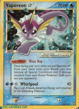 Einmal während deines Zuges, wenn du Aquana ☆ von deiner Hand auf deine Bank legst, kannst du alle Speziellen Zustände und 3 Schadensmarken von allen Aktiven Pokémon (deine und die deines Gegners) entfernen.