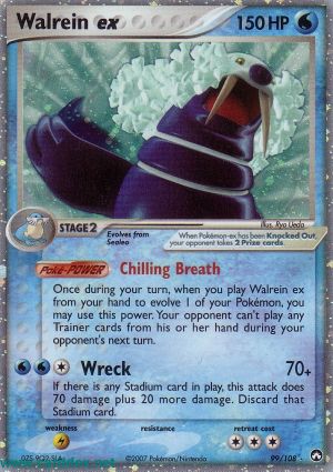 Einmal während deines Zuges, wenn du Walraisa ex von deiner Hand spielst, um 1 deiner Pokémon zu entwickeln, kannst du diese Poké-Power einsetzen. Dein Gegner kann in seinem nächsten Zug keine Trainerkarten von der Hand spielen.